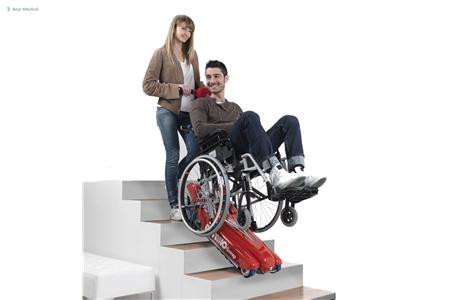 Lánctalpak segítségével képes a beteget a segítő személy irányításával lépcsőn feljuttatni. Azokban az esetekben ajánljuk, amikor a segítő személy fizikuma bizonytalan szállítás eredményezne. A lépcsőnjáró használata semmilyen jeletősebb fizikai igénybevétel nem jelent a segítő személy számára.